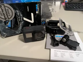 Fotocamera d'azione GoPro HERO 7 Black. Funziona perfettamente, contiene il caricatore, custodia per proteggere da urti e sott'acqua, batteria, non ha SIM. L'unico difetto è che gli slot sono un po' rigidi ma sono in buone condizioni.