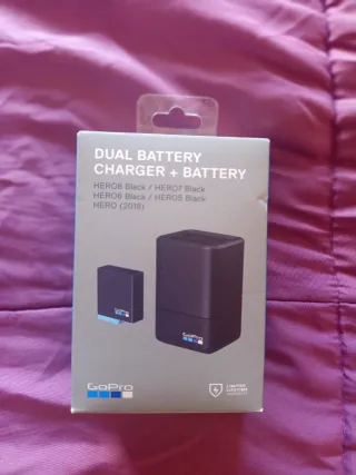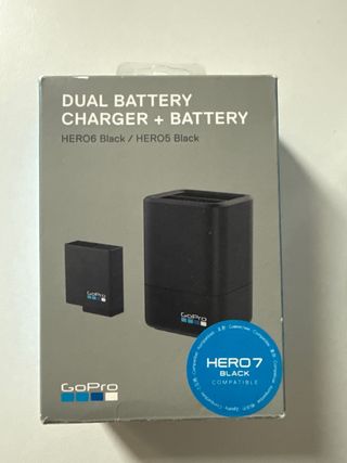 Caricabatterie dual GoPro con due batterie incluse. Compatibile con vari modelli di fotocamere GoPro. Include caricabatterie dual e 2 batterie. Compatibile con HERO8 Black, HERO7 Black, HERO (2018), HERO6 Black, HERO5.