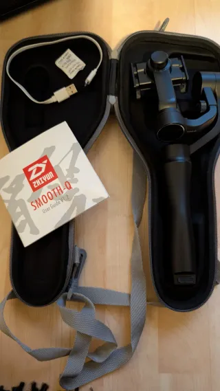 Gimbal Zhiyun Smooth-Q come nuovo, con custodia e cavo di ricarica. Vendita a Vitoria in mano. Tipo di gimbal: smartphone e action cam. Angolo di rotazione: 320 gradi. Angolo di inclinazione: 320 gradi. Angolo panoramico: 360 gradi. Peso minimo supportato: 75 grammi. Batteria: Zhiyun-Tech 26650 agli ioni di litio (x1). Autonomia massima: 12 ore. Tempo di ricarica: 2,5 ore. Temperatura operativa: Max: 45 °C | Standard: 25 °C | Min: -10 °C. Dimensioni: 118 x 105 x 285 mm. Peso: 440 grammi.