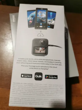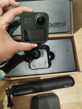 Con garanzia. Prezzo in negozio 399€. Fotocamera d'azione GoPro MAX con risoluzione 5.6K e capacità 360. Con estensione Pole 1,2 m. (20€ in più) Tutto mai aperto, acquistato presso El Corte Inglés a dicembre 2025. È un regalo dei Re Magi. - Cattura video 5.6K. - Registrazione a 360 gradi. - Design compatto e leggero.