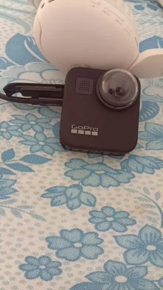 Fotocamera GoPro Max con registrazione 5.6K 360. - Lente grandangolare. - Schermo touch. - Resistente all'acqua. Vendo perché è stato un regalo che non mi piaceva. Ha molte funzioni che non utilizzo. Nuova, aperta, provata e conservata. Include tutti gli accessori originali: fotocamera, tappi per lenti, borsa, cavo di ricarica USB/USB-C, batteria, supporto per accessori, vite per supporto. Invio la fattura per assicurare la fotocamera in caso di rottura (è necessario pagare l'abbonamento GoPro). Prezzo nuovo di 400€ sul sito web.