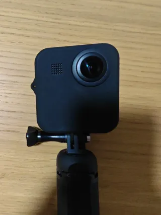 Fotocamera GoPro MAX, ideale per catturare le tue avventure a 360 gradi. Il suo design compatto la rende facile da portare ovunque. - Lente grandangolare. - Schermo touch. - Resistente all'acqua. Funziona perfettamente. Senza cavo, ma qualsiasi va bene. 1 batteria.