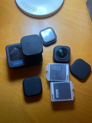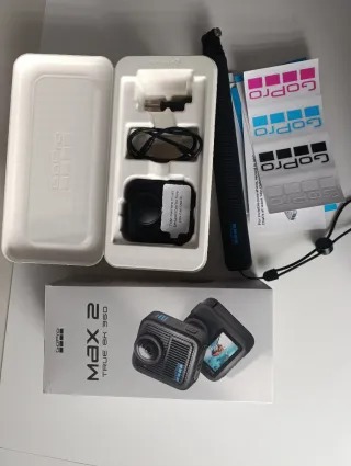 Fotocamera GoPro MAX 2 con registrazione True 8K. Include il bundle: - Bastoncino invisibile da 1,2 m. - Scheda SanDisk Extreme da 64 GB. - 2 batterie Enduro. - Coperture rigide per le lenti. - Cavo USB. - Montaggio a fibbia. - Panno in microfibra per lenti. Oltre a una custodia e protezioni in silicone per le lenti e uno schermo in vetro temperato. Acquistata durante le festività natalizie. Utilizzata solo un fine settimana.