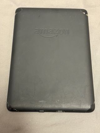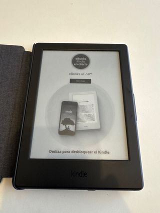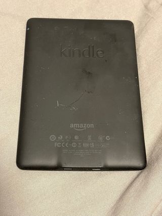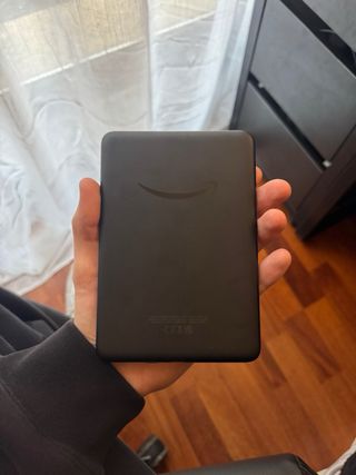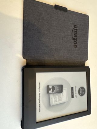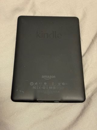 Lettore di libri elettronici Kindle in colore nero. Il modello è nell'ultima foto, non ricordo l'anno e non viene con il caricatore. - Schermo a inchiostro elettronico. - Design leggero e portatile. - Include custodia protettiva con finitura in fibra di carbonio. - Nessun uso, rimasto spento per anni. - La gomma della custodia è un po' allentata ma non influisce.