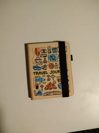 Custodia per Kindle con un divertente design da viaggio, che si adatta al dispositivo. - Design con illustrazioni di viaggi. - Chiusura elastica per fissare il Kindle o per poterla tenere mentre leggi.