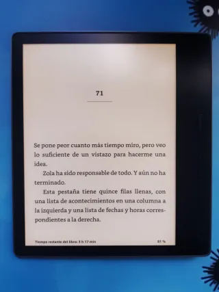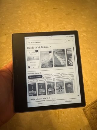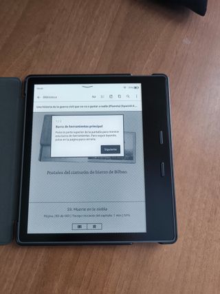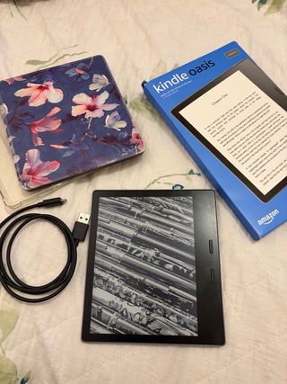 Kindle Oasis decimo. Come nuovo con copertina e scatola originale. L'ho cambiato perché me ne hanno dato uno nuovo. Ha 8 GB, ho più di 30 libri e non mi ha mai dato problemi di spazio È super sottile, lo uso da molto tempo ed è molto pratico. Non pesa nulla ed è molto comodo da impugnare. Lo schermo si legge molto bene, con il sole o senza luce artificiale. Molto comodo da leggere per strada o di notte senza disturbare il partner. Ideale per viaggiare o da portare via da casa. La cover è un po' rotta, ma costano poco e ce ne sono di più originali;) Sono stato molto contento quando ho apportato la modifica con i libri fisici!
