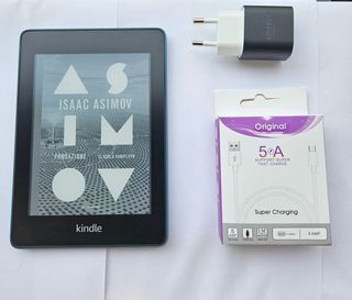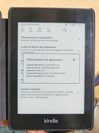 Dispositivo perfectamente funcional. 6" impecable - 20 idiomas. 32 GB y firmware 5.10 excepcional: ¡cualquier modificación es posible! Funda, cable y cargador de Amazon incluidos. Se conecta a la tienda Kindle. Envío rápido y