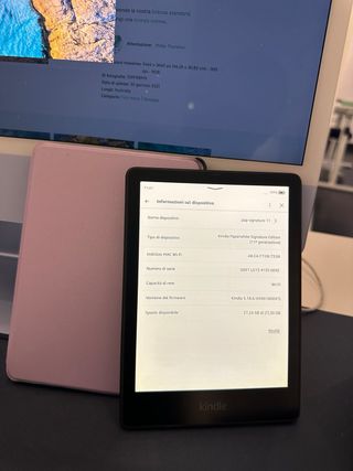 Kindle Paperwhite 11 Signature Edition, colore nero. - Schermo da 6.8 pollici. - 32 GB di memoria. - Wi-Fi. Senza Publicita, in buonissime condizioni, batteria 🔋 che tiene 1 mese con una ricarica senza esagerare, impermeabile all acqua 💦, tonalità/illuminazione regolabile, modalità giorno/notte , 32 Gb di capacità ,100.000 libri mobili che possono essere immagazzinati,libreria portatile, cavo caricabatterie originale e cover in foto presenti.Una bellissima idea regalo. 🎁