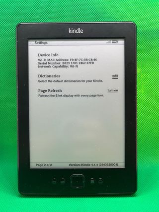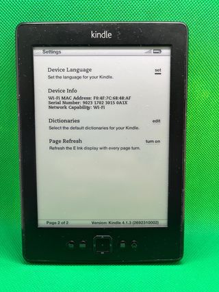Kindle di 5^ generazione perfettamente funzionante e in perfette condizioni estetiche. Versione senza pubblicità da 2GB, ha il Wi-Fi ma non ha la retroilluminazione. Adatto a chi vuole un Kindle senza spendere molto. È possibile trasferire i propri eBook tramite il computer 💻 Sul mio profilo trovi altri prodotti simili ✅