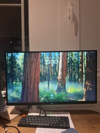 Monitor LG da 27 pollici con risoluzione 4K UHD. - Pannello IPS per colori vivaci e ampi angoli di visione. - Design elegante e moderno. - Supporto da 45€. - Il tono giallo sul retro è dovuto al sole, non influisce sul funzionamento.