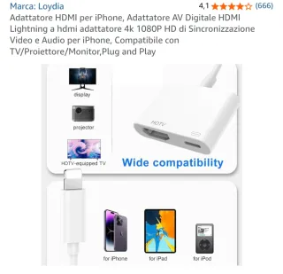 Adattatore HDMI Loydia per iPhone iPad iPod