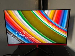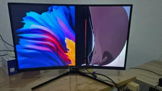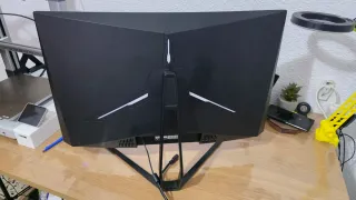 Monitor curvo MSI, perfettamente funzionante e molto fluido. Ciò che si vede sul retro non è rotto, sono delle luci LED che ho aggiunto e poi rimosso per la vendita, la maggior parte può essere rimossa con alcool. SPEDIZIONE LO STESSO GIORNO DELL'ACQUISTO ✅ - Schermo curvo.✅ - 180 Hz ✅ - Ha i suoi cavi corrispondenti ✅ - L'ho acquistato da PC Componentes e mi è costato 185€