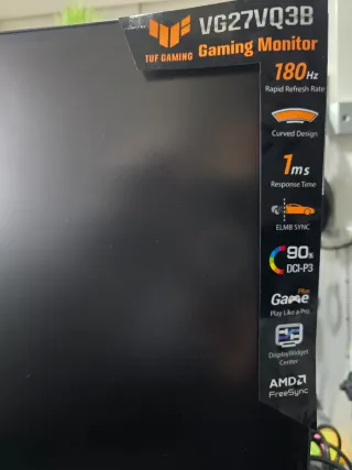 Monitor gaming ASUS VG27VQ3B con schermo curvo e alta frequenza di aggiornamento. - Risoluzione Full HD. - Frequenza di aggiornamento di 180Hz. - Tempo di risposta di 1ms. - Design curvo. - Tecnologia ELMB SYNC. - Copertura cromatica DCI-P3 del 90%. - Compatibile con AMD FreeSync.