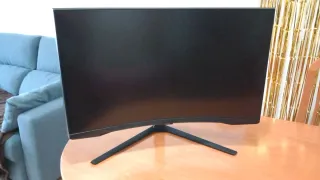 Monitor curvo da 27 pollici con risoluzione FullHD e una frequenza di aggiornamento di 165Hz. Ideale per il gaming. Schermo LED. Design curvo per un'esperienza immersiva. Connessioni HDMI e DisplayPort. Presenta un piccolo graffio sullo schermo, sul lato, ma non influisce sulla visibilità o sul gameplay.