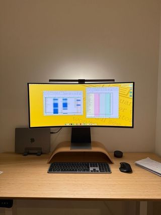 Schermo per computer con un design curvo che offre un'esperienza visiva immersiva. Panoramico, risoluzione nitida, cornice sottile.