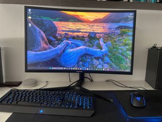 Monitor curvo Samsung da 27 pollici in colore nero. 1920x1080 120hz Ideale per il gaming o il lavoro. Modello: C27FG73FQU Altezza, angolo e inclinazione regolabili. L'unico difetto è l'angolo in basso a destra, non so come sia successo ma non influisce affatto.
