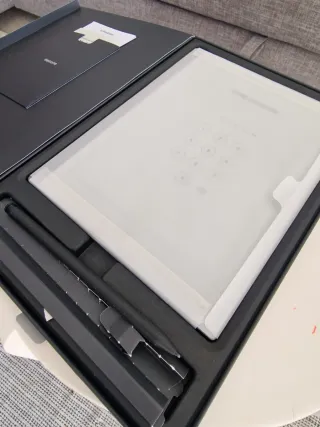 Vendo reMarkable Paper Pro con Marker Plus e custodia Book Folio originale (Mosaic weave - Basalt). Prezzo nuovo del set: 848 €. Acquistato nell'aprile 2025 e utilizzato solo in casa. Ottimo stato e funzionamento perfetto. Batteria curata, mantenuta abitualmente tra il 50% e l'80%. Eccellente esperienza di scrittura e lettura, molto comoda per gli occhi e chiaramente diversa da una tablet convenzionale grazie allo schermo e-ink. Non include il cavo originale, ma utilizza USB-C standard. Senza scatola originale, ma viene consegnato perfettamente protetto. Lo vendo perché non gli do più l'uso che merita dopo aver terminato gli studi.