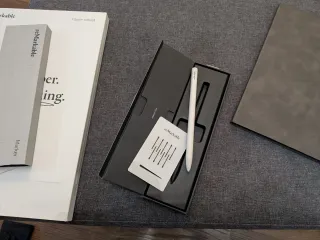 Confezione premium di Remarkable 2 con custodia in pelle e Marker Plus. Include Remarkable 2, custodia in pelle, Marker Plus e punte di ricambio, cavo USB. Una delle migliori acquisti che ho fatto. Lo vendo solo perché ho comprato Remarkable Paper Pro a colori. Se vuoi avere tutte le tue note in un'unica 'libretta', tenere i tuoi libri e appunti, questo è un acquisto incredibile. Valore reale 650 per l'intero pack. È in perfette condizioni.