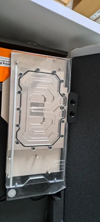 Blocco di raffreddamento a liquido per schede grafiche. Modello: EK-Quantum Vector2 Trio RTX 3090 Ti. Accessori di montaggio inclusi.