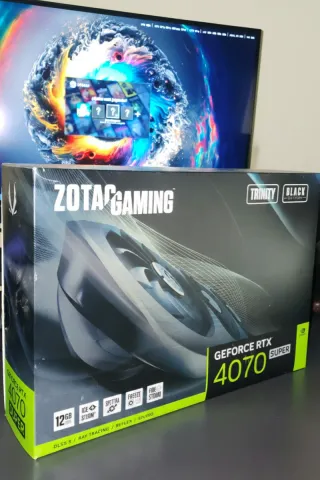 Scheda grafica Zotac Gaming GeForce RTX 4070 Ti SUPER. - Edizione Trinity Black. - 16 GB di memoria GDDR6X. - Compatibile con DLSS 3, Ray Tracing e Reflex. - Include la tecnologia FireStorm.