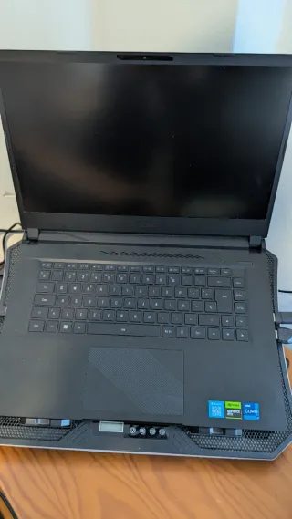 Portatile Asus TUF con processore Ryzen 7940hs e scheda grafica RTX 4070. Batteria non funziona, cerniere riparate e luci di stato (accensione, SSD, Wi-Fi) non si illuminano. Caricatore incluso. Funziona perfettamente e con pasta termica di qualità appena applicata. Opzione di aggiungere SSD o RAM per più denaro. Trackpad un po' difficile da usare. Memoria RAM: senza RAM. Archiviazione: SENZA SSD. Colore: Nero/Grigio.
