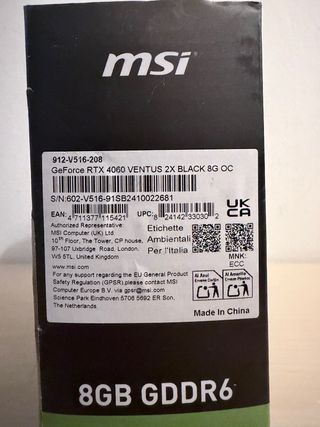 Nuova e sigillata. Scheda grafica MSI GeForce RTX 4060 Ventus 2X. - Modello OC Edition. - 8GB di memoria DDR6. - Supporto DLSS 3, Ray Tracing e Reflex. - Design Ventus 2X Black.
