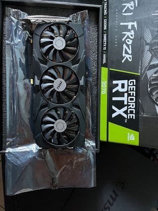 Scheda grafica MSI GeForce RTX 2070 con 8GB di memoria. La scheda è come nuova, ed è ancora con i sigilli poichè non l'ho mai fatta aprire. - Design TRI FROZR. - Supporto per Ray Tracing, GDDR6 e DirectX 12. - Ventole MSI. 240 fps fissi in 1080 su tutti gli fps.