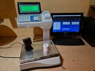 Bilancia con 6 MESI DI GARANZIA. Siamo un servizio tecnico di DIBAL EPELSA DINA CELY RICMA MAGRIÑA MINERVA. Bilancia Epelsa Euroscale con stampante per ticket e scanner per codici a barre. Modello superiore Epelsa Jupiter. Manuale di istruzioni e assistenza telefonica per domande. Il prezzo include la programmazione dei dati del ticket e degli articoli. Connessione Ethernet al computer con software Hydra. Contatto WhatsApp 615430849 Enrique. Bilancia per negozio di carne, salumeria, bilancia commerciale, bilancia per ticket, bilancia elettronica, bilancia per frutta, stampante per ticket, bilancia per negozio, scanner.