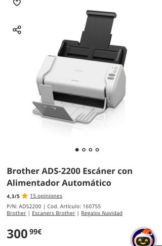 Scanner Brother ADS-2200 con Alimentatore Automatico. Scansione duplex passo singolo. Software incluso per Windows e Mac. Connessione USB. Creazione PDF e ricerca. Specifiche Brother ADS-2200. Interfaccia: USB 2.0. Peso: 2,6 kg. Dimensioni: 299 mm (L) x 206 mm (P) x 178 mm (A). Dimensioni imballo: 393 mm (L) x 245 mm (P) x 286 mm (A). Peso imballo: 4 kg. Capacità alimentazione automatica: 50 fogli. Dimensione massima scansione: 215,9 x 355,6 mm. Risoluzione ottica: 600...