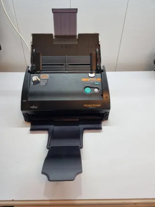 Scanner per documenti Fujitsu ScanSnap S510. Design compatto ed efficiente, ideale per la digitalizzazione di documenti. Include guida per la posizione dei documenti. Funziona perfettamente. Due rulli sostituiti, lo scanner è come nuovo. Riconosciuto dal programma Vuescan e funziona bene con il software Scan Manager. Fornito con alimentatore e cavo.