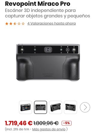 Scanner 3D portatile Revopoint Miraco Pro. Cattura oggetti grandi e piccoli. Include scatola, tutti gli accessori e spray 3D per opacizzare le superfici. Come nuovo, funziona perfettamente. Aspetto offerte.