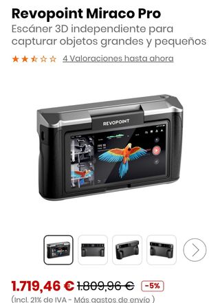 Scanner 3D Revopoint Miraco Pro. Vendo per acquisto altro modello. Usato molto poco e sostituito in garanzia qualche mese fa per un problema nell'aggiornamento software. Mi è stato mandato uno scanner nuovo. Il prodotto è ancora in garanzia. Dalla sostituzione mai più utilizzato. Vendo completo di tutti gli accessori che nella maggior parte dei casi mai usati.