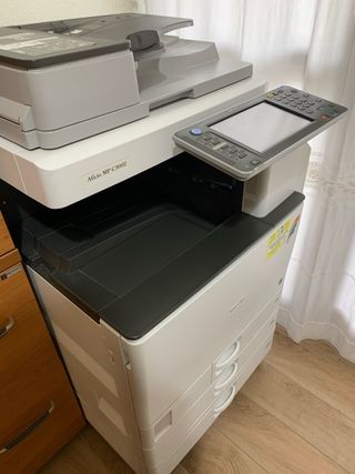 Fotocopiatrice a colori professionale Ricoh Aficio MP C3002. - Colore grigio e bianco. - Ideale per uffici e ambienti professionali.Funzione stampa anche in A3. scanner a colori. dotato di ADF. 3 cassetti fogli.