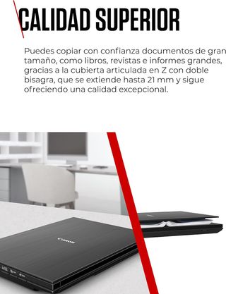 Scanner piatto di alta qualità, ideale per digitalizzare documenti e foto. Design compatto ed elegante. Finitura in colore nero.