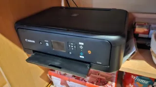 Stampante multifunzione Canon TR775 in colore nero. Connessione WiFi per stampa wireless. Scanner integrato per digitalizzare documenti. Cartuccia nera di ricambio non utilizzata. Non la uso da tempo ma l'ultima volta ha funzionato bene.
