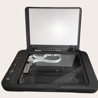 Scanner piatto della marca Canon in colore bianco. Design compatto e leggero. Ideale per digitalizzare documenti e foto.
