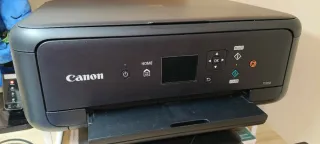 Stampante multifunzione Canon TS5150 in colore nero. Questo modello è compatto e versatile. Funzioni: stampante, scanner e fotocopiatrice. Connettività Wi-Fi. Display LCD. Non ha più inchiostro.