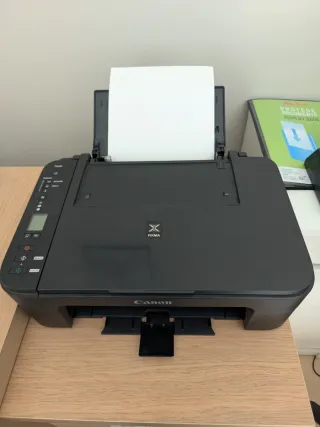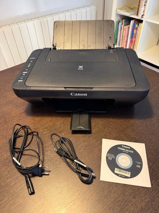 Stampante multifunzione Canon Pixma in bianco. Copia, stampa e scansiona. Ideale per casa o ufficio. Design compatto e moderno. Vassoio carta estraibile. Scanner integrato. Modello MG2400. Include disco di installazione, cavo di alimentazione e cavo di connessione al computer. Utilizza cartucce MG 545 e MG 546. Risoluzione 4800 x 600 DPI. Vendo perché mi è stata regalata una nuova. Contattami su WhatsApp o al 633226017 e Wallapop.