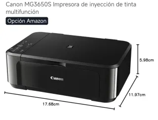Stampante multifunzione Canon MG3650S a colori in nero. Ideale per casa o ufficio. - Stampante a getto d'inchiostro. - Funzione di scanner e fotocopiatrice. - Include un cartuccia nera in regalo.