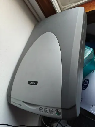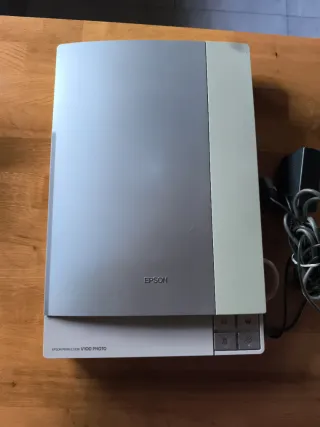Scanner Epson Perfection 1660. In buone condizioni. Include cavo USB e supporto per diapositive. Non compatibile con MAC o Windows più recenti.