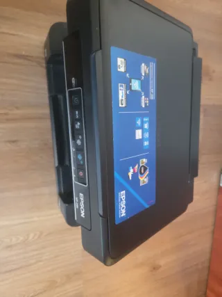 Scanner Epson a colori nero con connettività Wi-Fi. È necessario inserire i cartucce poiché non è stato utilizzato per un anno. È necessario un cavo USB se non si utilizza il Wi-Fi. - Connessione wireless. - Design compatto.