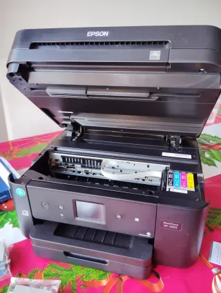 Stampante multifunzione Epson ET-2600 a colori in nero. - Connettività Wi-Fi. - Pannello di controllo con icone. - Design compatto. Non stampa correttamente. Ideale per tecnici, chi sa ripararla o per utilizzare i suoi componenti di ricambio. Stato attuale: lo scanner funziona perfettamente. La stampa presenta problemi di iniezione (il nero non è nitido e i colori non escono bene) a causa della mancanza di uso prolungato. Utilizzo: è stata utilizzata in ambiente domestico (insegnante di francese). Componenti: scocca, vassoio, scanner e componenti interni in ottimo stato estetico. Prezzo simbolico per chi vuole sfruttare i suoi componenti.