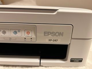 Stampante multifunzione Epson XP-247 in bianco. - Connettività Wi-Fi. - Design compatto. L'inchiostro a colori è ok, il nero deve essere sostituito.