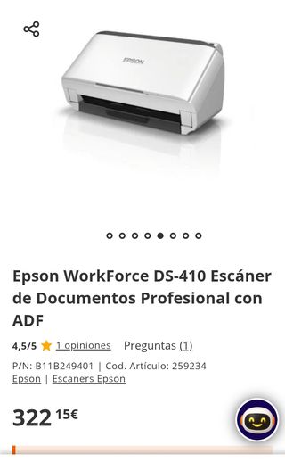 EPSON WorkForce DS-410 | Scanner Documenti A4 - 600 DPI, Modalità A3 Manuale USB, ADF, Duplex, Rilevamento Doppio Alimentazione, Protezione Carta, 26ppm, Design Compatto Tipo di scanner: Documento Marca: Epson Nome del modello: WFDS410 Tecnologia di connettività: USB Risoluzione: 600 Peso del prodotto: 2,5 Kg PROTEZIONE AVANZATA DI DOCUMENTI: L'Epson WorkForce DS-410 è dotato di rilevamento doppio alimentazione e tecnologia di protezione della carta, fermando la macchina all'istante se rileva due fogli contemporaneamente, evitando errori e danni agli originali. SCANSIONE AUTOMATICA ED EFFICIENTE: Ottimizza il tuo flusso di lavoro con la modalità di alim