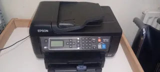 Stampante multifunzione Epson Workforce WF-2870 a colori in nero. - Stampante + Fotocopia + Scanner + Fax - Scanner/Fotocopia multipagina - Wifi o cavo - Stampa da cellulare - Schermo LCD 2 cartucce d'inchiostro nere nuove mai usate. Poco uso; funziona perfettamente, ma si consiglia una revisione per regolare i colori. Mantiene tutta la confezione originale per eventuali spedizioni.