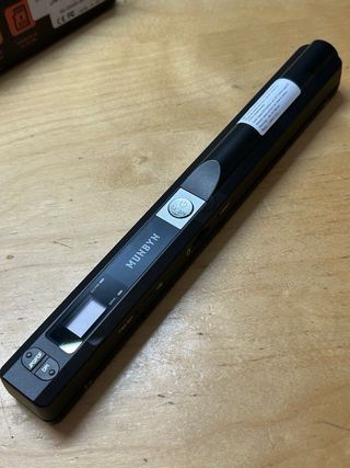 Scanner Portatile: MUNBYN Mini Scanner Portatile Senza Fili con SD 16GB, Risoluzione 900 DPI, Selezione Formato LCD A4/JPG/PDF di colore nero. Scanner portatile a mano tipo 'bastone' per digitalizzare documenti, foto e pagine fino al formato A4, salvando i file direttamente su una scheda microSD da 16 GB. Caratteristiche principali: Risoluzione selezionabile: 300 / 600 / 900 DPI. Formati di salvataggio: JPG e PDF. Archiviazione: include microSD da 16 GB (secondo il pack/annuncio). Trasferimento al PC: tramite cavo USB, senza bisogno di installare driver (secondo la descrizione del prodotto).