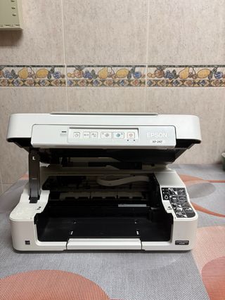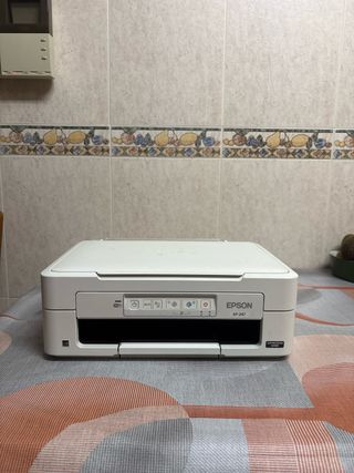 Stampante multifunzione Epson XP-247 in bianco. Connessione WiFi (puoi stampare da cellulare o portatile). Dimensioni compatte, occupa poco spazio. Facile da usare. Buona qualità di stampa per documenti e foto.