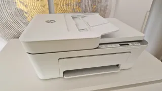 Stampante multifunzione HP DeskJet Plus 4120 in bianco. - Scanner integrato. - Vassoio di ingresso e uscita carta. - Pannello di controllo con pulsanti. - Design compatto. - La vendo perché non so nemmeno come collegarla. - Utilizza cartucce d'inchiostro.