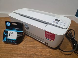 Stampante getto di inchiostro HP DeskJet 3720, bianco e nero e colore, funzionalità scanner e fotocopie, connessione WiFi o Usb, inclusa cartuccia nero originale HP 304, cavo alimentazione e cavo USB inclusi