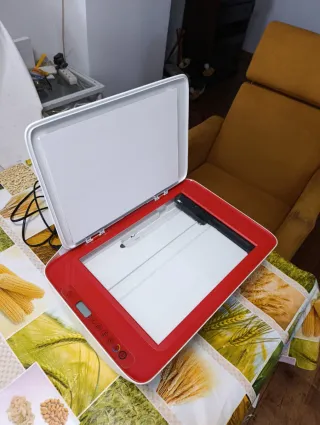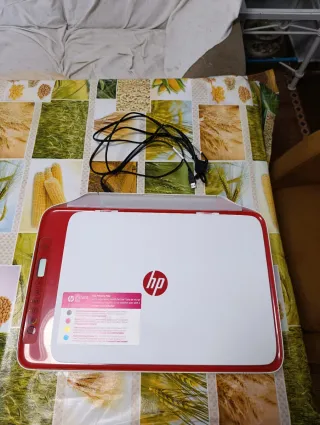 Stampante HP DeskJet 2723 in colore rosso. Progettata per una configurazione semplice e uso domestico di stampa non frequente (cioè, non stampare 200 documenti all'ora). La utilizzavo per stampare gli appunti, ma non mi serve più. Design compatto e moderno. Ideale per compiti di stampa di base. Funzione di stampa fronte-retro manuale. Scanner. Supporta WiFi 5Ghz per massima velocità. Se accesa, è possibile stampare da qualsiasi luogo, anche fuori casa con l'app HP. Stampa un PDF di 30 pagine in circa 1 minuto. Ho la scatola e il biglietto.